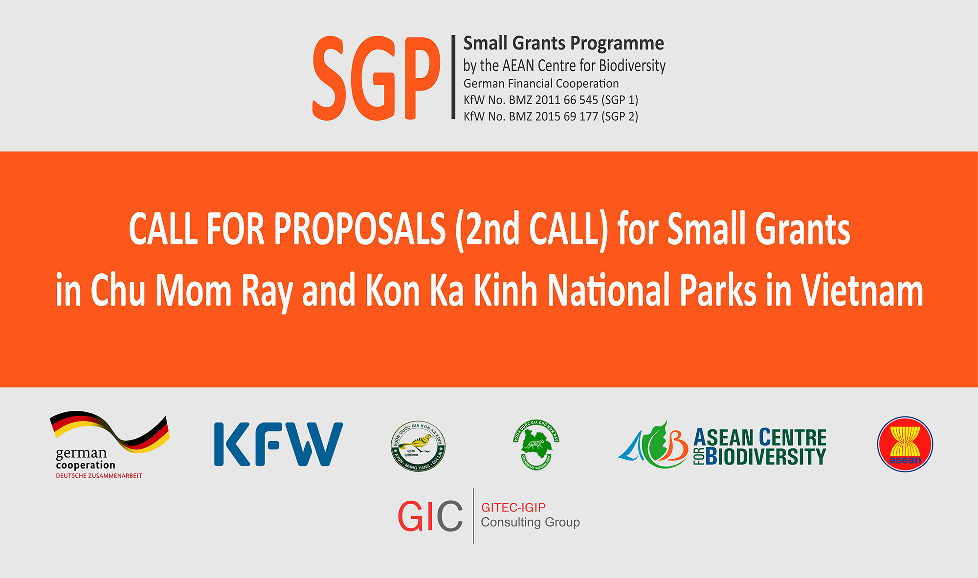 On behalf of (1) ASEAN Centre for Biodiversity and (2) Nature Biodiversity Conservation Agency (NBCA) of the Ministry of Natural Resources and Environment (MONRE), the Thua Thien Hue Union Science and Technology Associations (HUSTA), as the Service Provider (SP) for Chu Mom Ray and Kon Ka Kinh ASEAN Heritage Parks (AHPs) is pleased to launch a Call for Proposals (2nd call) for Small Grants in the framework of Small Grants Programme phase II (SGP II) in the both AHPs.